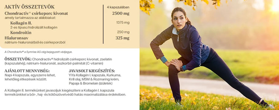 kollagént, hialuronsavat, és kondroitin-szulfátot tartalmaz. Ez az
