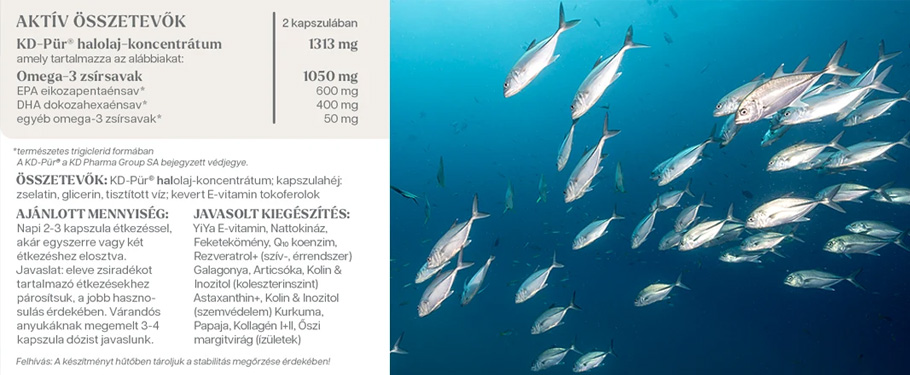 Az Omega-3 zsírsavak esetén nagyon fontos elvárás a minőség, ami magába foglalja az alapanyag forrását, tisztaságát, feldolgozását, az oxidációtól való védelmet, avasodást, a megfelelő tárolást. Termékünket a német KD Pharma Group gyógyszeripari cég, a nagy tisztaságú Omega-3 zsírsavak vezető gyártója állítja elő. Kis méretű halakból (szardella, szardínia és makréla) koncentrált Omega-3 olajat állítanak elő Norvégiában, majd a további feldolgozás németországi gyógyszergyárban történik. A KD-Pür® technológiának köszönhetően gyengéden vonják ki (CO2 kivonatolással), és tisztítják a rendkívül érzékeny Omega-3 zsírsavakat, mindezt túlzott hő, kémiai oldószerek és oxigén nélkül. A tartósítás természetes, kevert E vitaminnal (tokoferollal) történik.