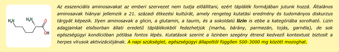 - Övsömör kiegészítő kezelésében a magasabb dózisú lizin (2000 mg) mellé B-komplexet, R-alfa-liponsavat is ajánlunk.
