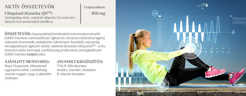 Q+ Ubiquinol rendkívül fontos szerepet tölt be a mitokondriumok (energiatermelő sejtszervecskék) energiatermelésében. Katalizálja az ATP molekula szintézisét, ami az emberi test "energiahordozója". A mitokondriumok száma és hatékony működése szorosan összefügg a sejtek egészségével, és szervezetünk fiatal állapotában való tartásával. Az ubikinol emellett a mitokondriumokban keletkező káros oxidációs végtermékeket is semlegesíti antioxidáns képességénél fogva. Hatékonyan hozzájárul a szív- és érrendszer egészségének fenntartásához. A szívizomnak, amely soha nem pihen, jelentős mennyiségű Ubikonolra van szüksége.